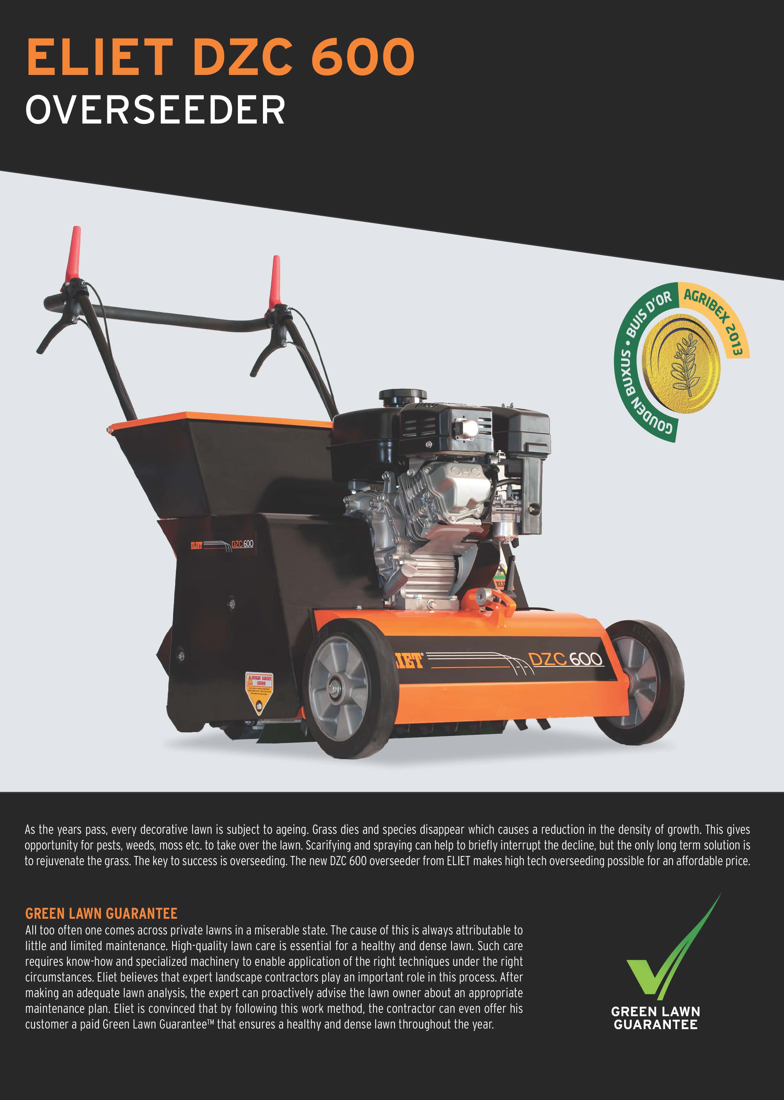 The new DZC 600 overseeder from Eliet makes high tech overseeding possible for an affordable price.